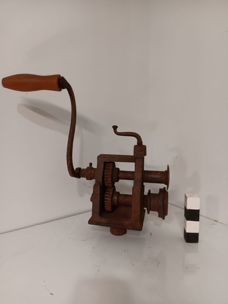 An 1887 Pocock machine for bending sheet metal.  Similar to a pipe former but has the ability to open and close the rear bar by adjusting the lever on the teeth.